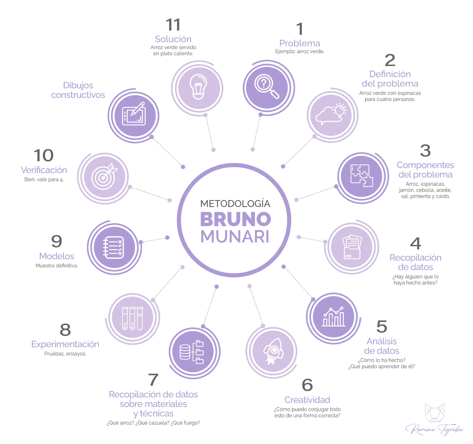 De acuerdo con la descripción de Munari, con la ayuda de los siguientes pasos se podrá hallar una solución al problema de cualquier tipo de diseño.