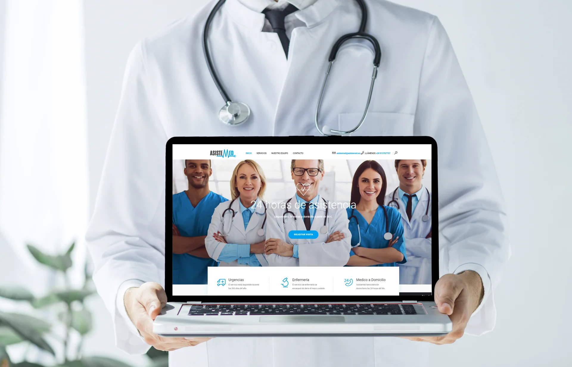 Este proyecto nace de la necesidad de renovar por completo la identidad visual y digital de ASISTEMED, una empresa de asistencia médica domiciliaria que buscaba diferenciarse de su competencia y conectar de forma más humana con sus pacientes.